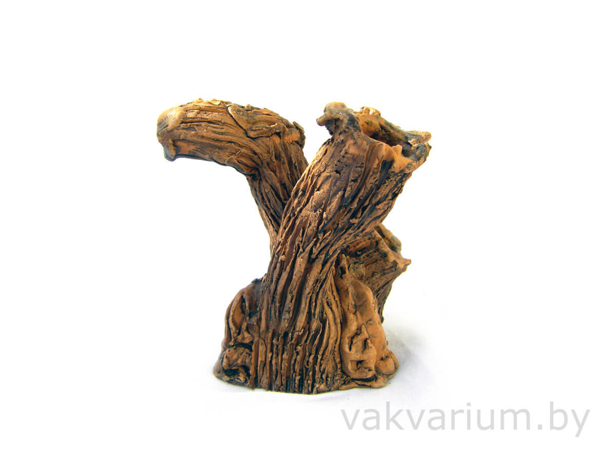 Коряга ручной работы из глины в аквариум
