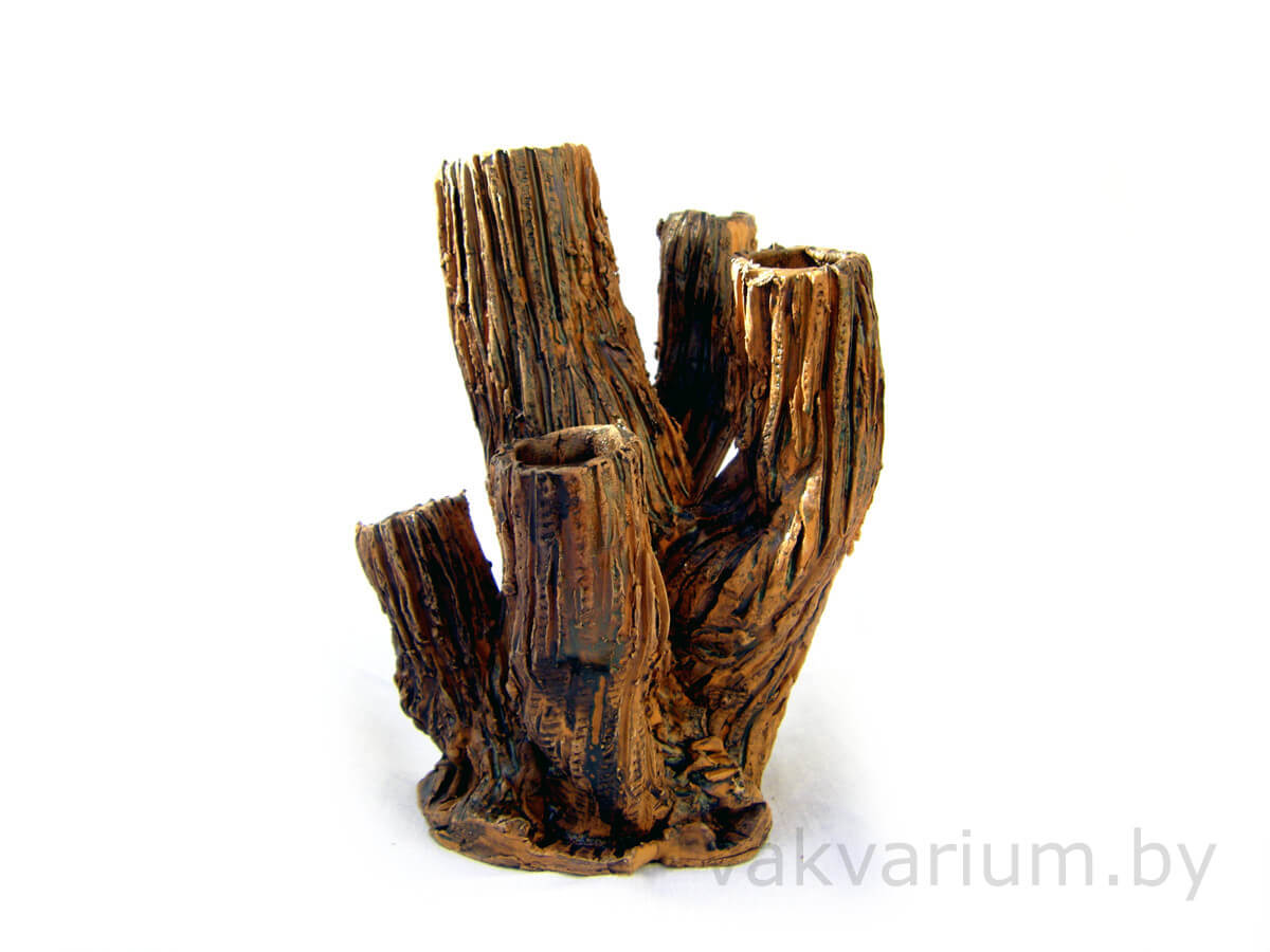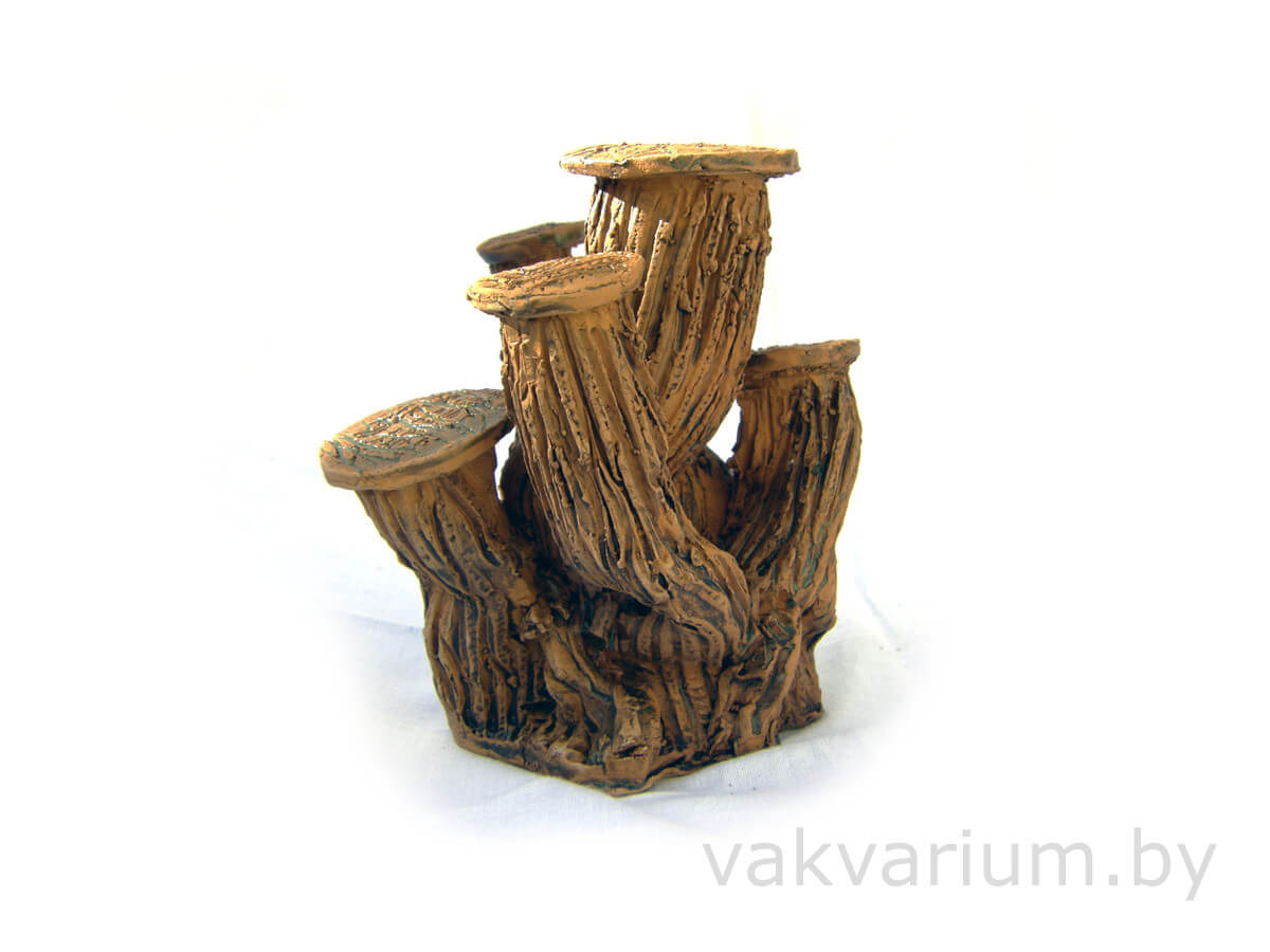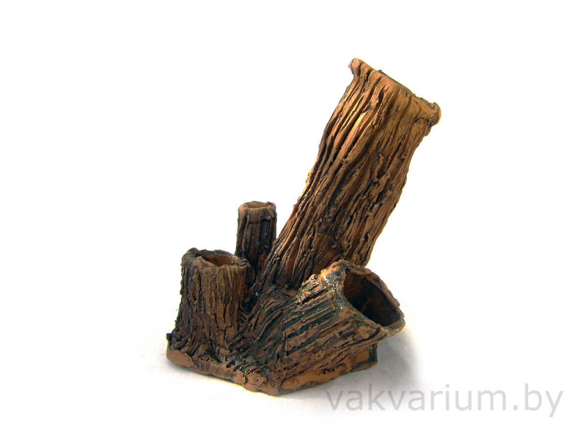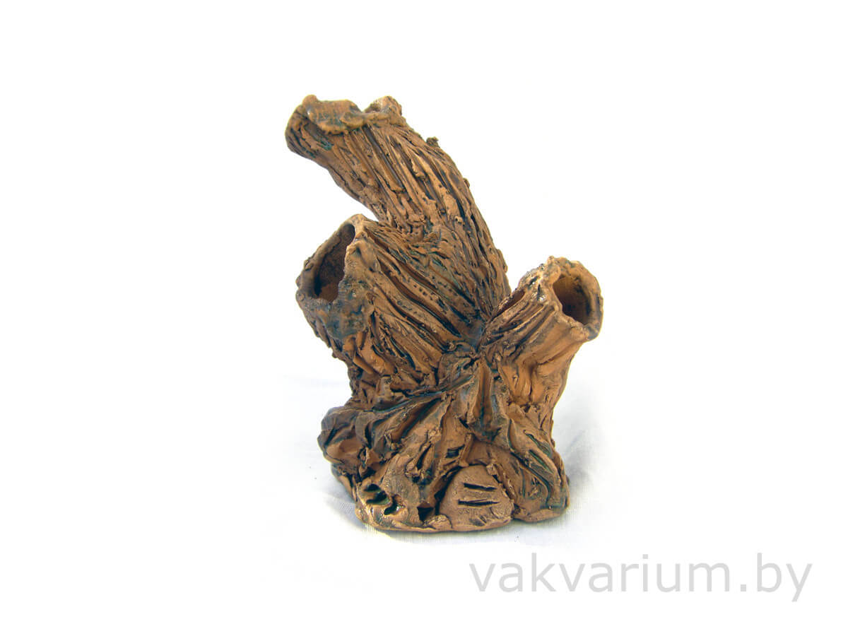 Коряга с пнем под растения ручной работы из глины в аквариум