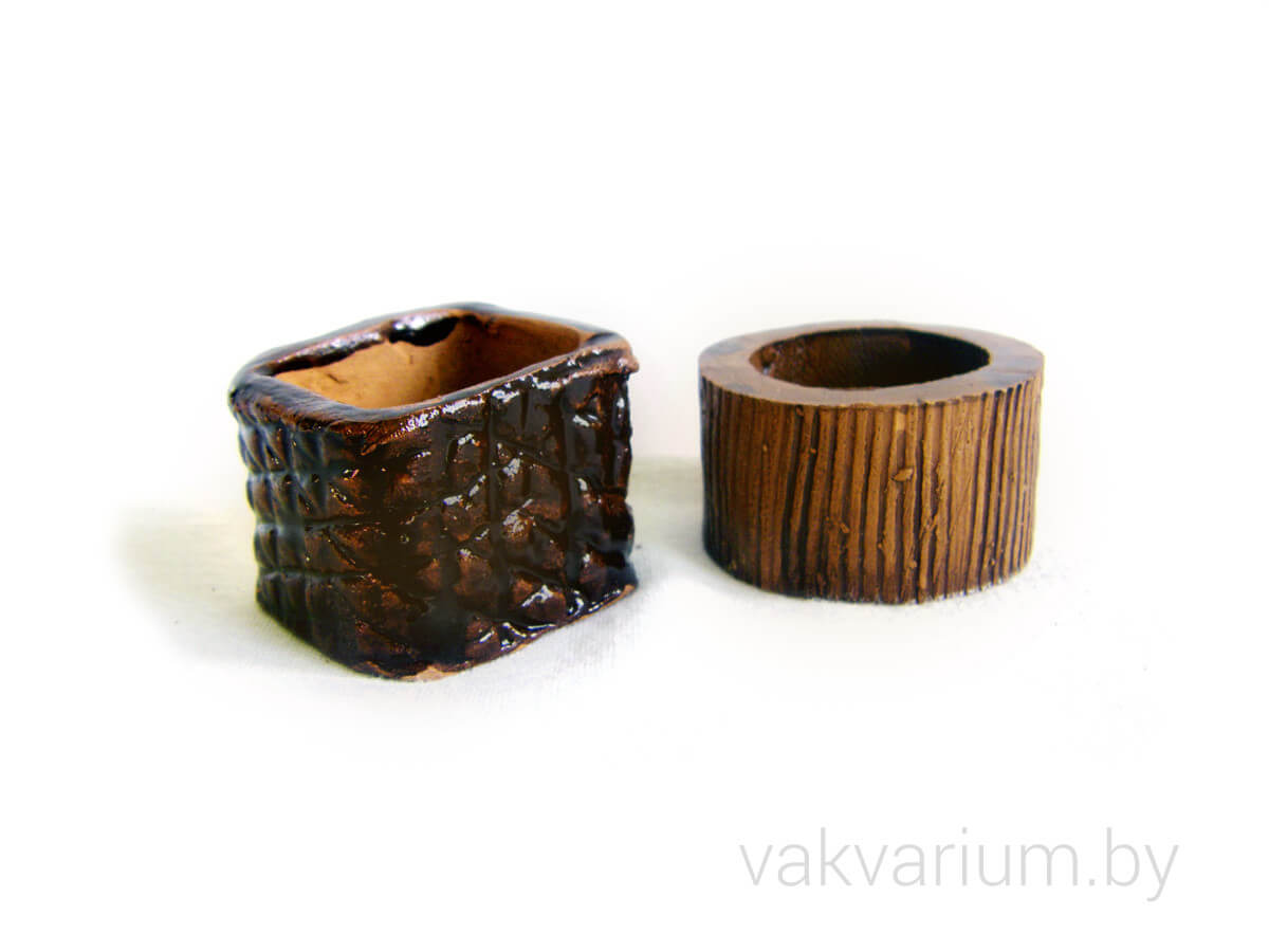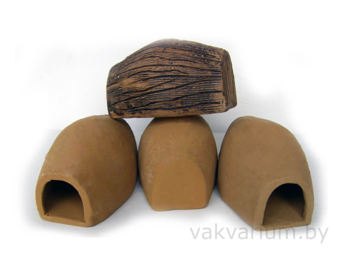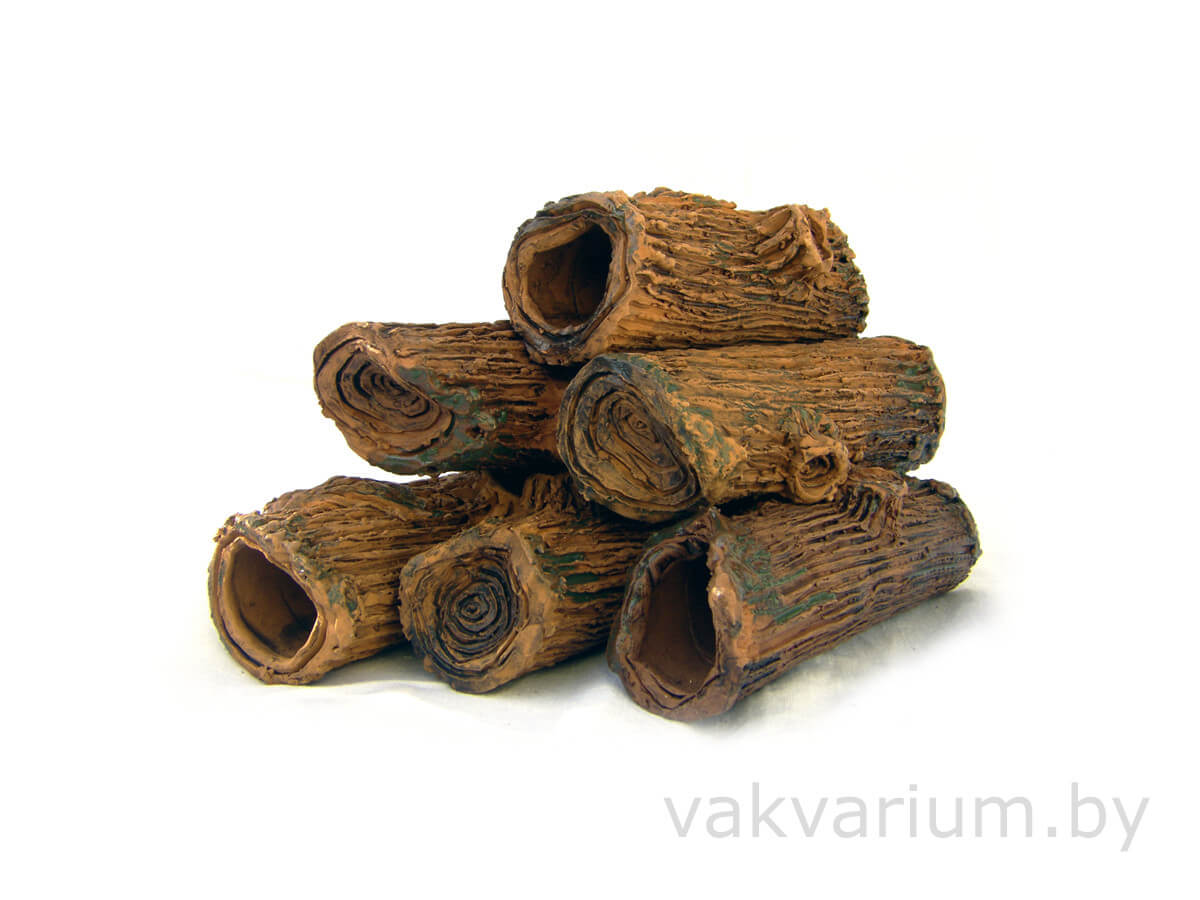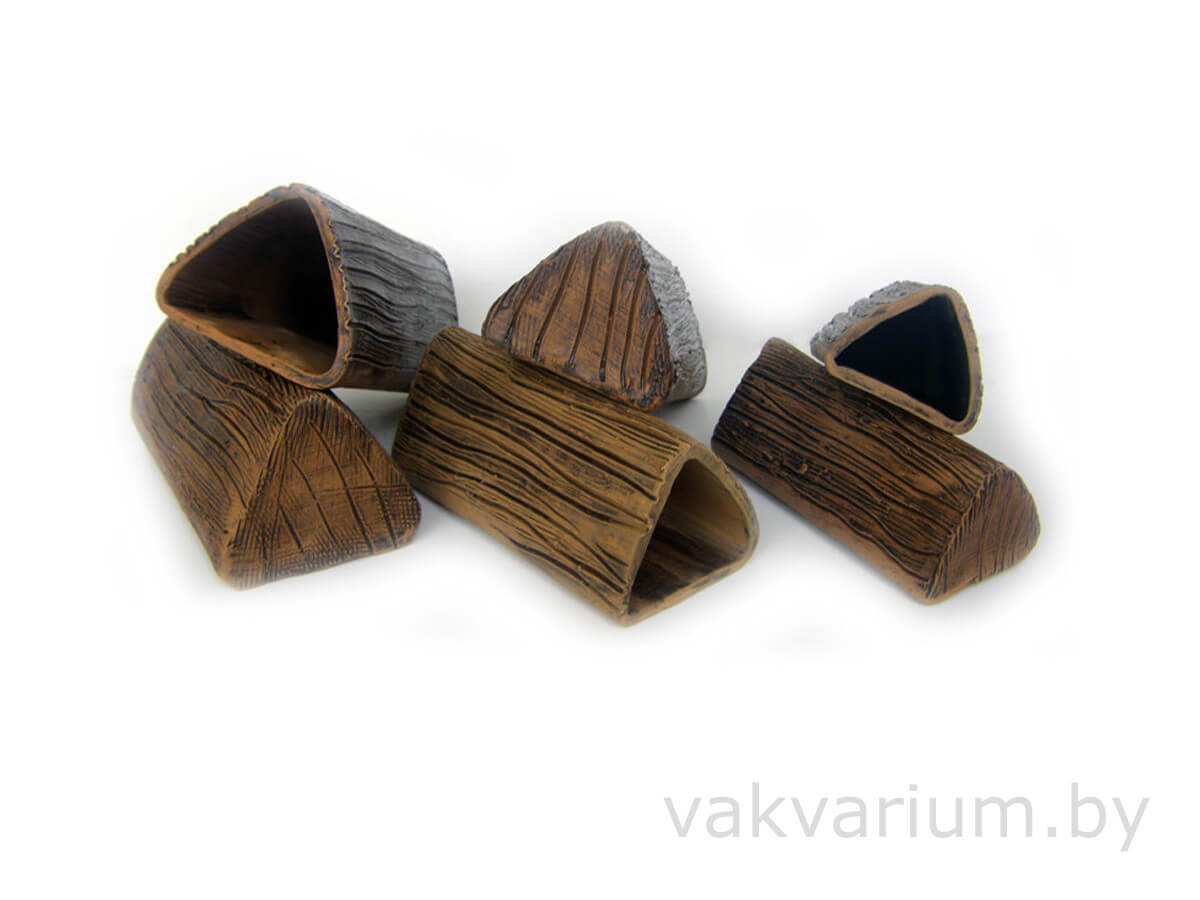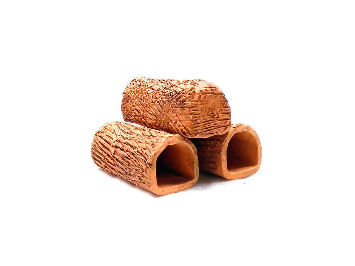 Трубки для укрытия (декорированные под бревна) ручной работы из глины в аквариум