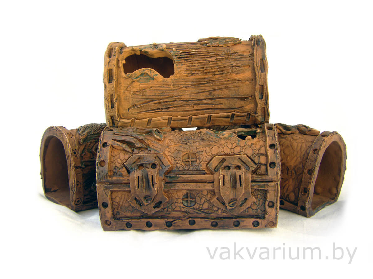 Трубки для укрытия (декорированные под сундук) ручной работы из глины в аквариум